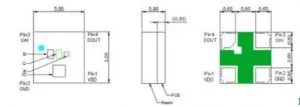 The 2020 RGB LED is very small (2.0 mm by 2.0 mm) and has been equipped with a built-in IC controller. Not only can the LED’s be addressed individually, but the LED’s can be fed with the correct current values as well. Only one 5 Vin in the design is therefore sufficient. It’s also not necessary anymore to use an external LED driver.