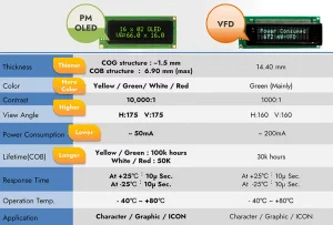Table 1: PM-OLED vs. VFD parameter comparison