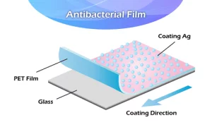 The silver ion material is evenly spread on the PET substrate in a coating process. The silver ion coating layer is tightly combined with the PET after thermal curing treatment to form an antibacterial protective film. as shown in Figure 3.