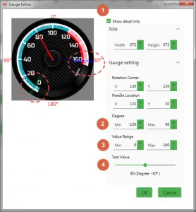 1.3 Edit the rotation angle of the needle in the Gauge Edit window.