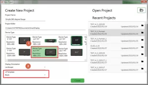 1.1 Create a new project and select 4.3″ Display blank template in GUI Builder.