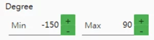 Regarding the degree range of the needle, the minimum and maximum angle parameters can be changed by pressing the +/- buttons at the Degree area, as shown in the figure.