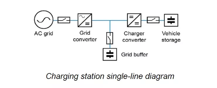 - The charger converter, which manages the power flow to the vehicle and ensures safety during charging.