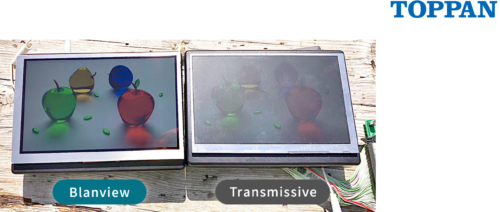 Blanview is Toppan’s unique TFT-LCD technology enabling the display to create high contrast and crisp images even in bright circumstances where a sunlight hit to display surface directly.
