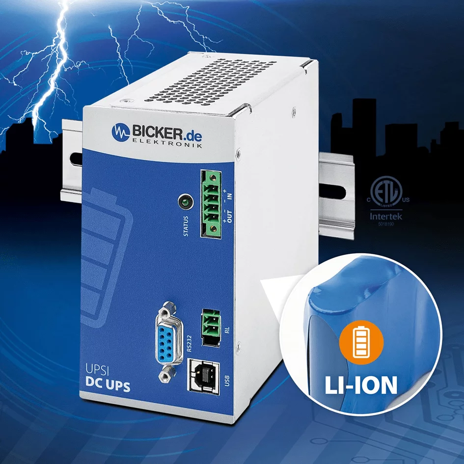 The power supply specialist Bicker Elektronik presents therefor a particularly compact and durable solution with an excellent price-performance ratio: The new DC UPS module UPSI-2406DP1 with integrated Lithium-Ion backup battery, which bridges power failures, brownouts and flicker in the 24VDC power supply. Due to optimized power electronics, DC loads of up to 100 Watt can be safely bridged.