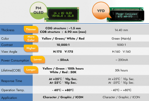 Based on the above disadvantages, the market is actively looking for alternatives to VFDs. Replacing VFD modules with OLED modules has many advantages, as shown in Table 1. Winstar provides PM-OLED module replacement solutions, which can effectively compensate for VFDs’ weaknesses.