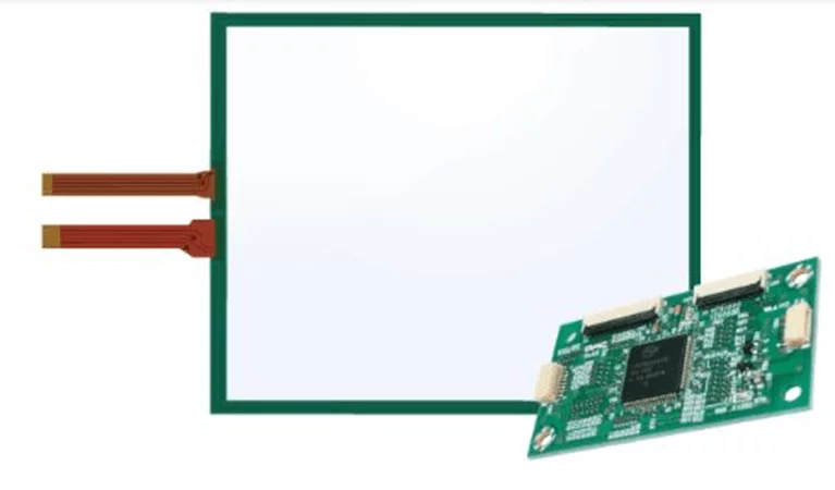 The controller is PCBA mounted with TSC-52/IC (gesture inputting controller IC for resistive touch screens). TSC-52/IC is used to realize gesture functions with 2-finger combined with the light load 4-wire resistive touch screen LST series.