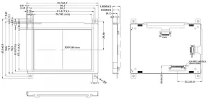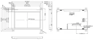 WO320240E is a monochrome graphic LCD module made of 320×240 dot matrix format. This STN COG module is built-in with RA8835 controller IC; it supports 6800 and 8080 parallel interface, 1/240 driving duty, it is also built-in with negative voltage generator. Furthermore, this model is built-in with temperature compensation available for optional.
