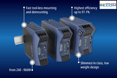 A breakthrough range of economic, three-phase DIN rail power supplies has been introduced by RECOM in collaboration with their recent acquisition, power specialist LECO. The RACPRO1 range includes parts rated at 240W, 480W, and 960W output in ultra-compact, class-leading widths of 43mm, 52mm, and 80mm respectively. Find more information in this article.