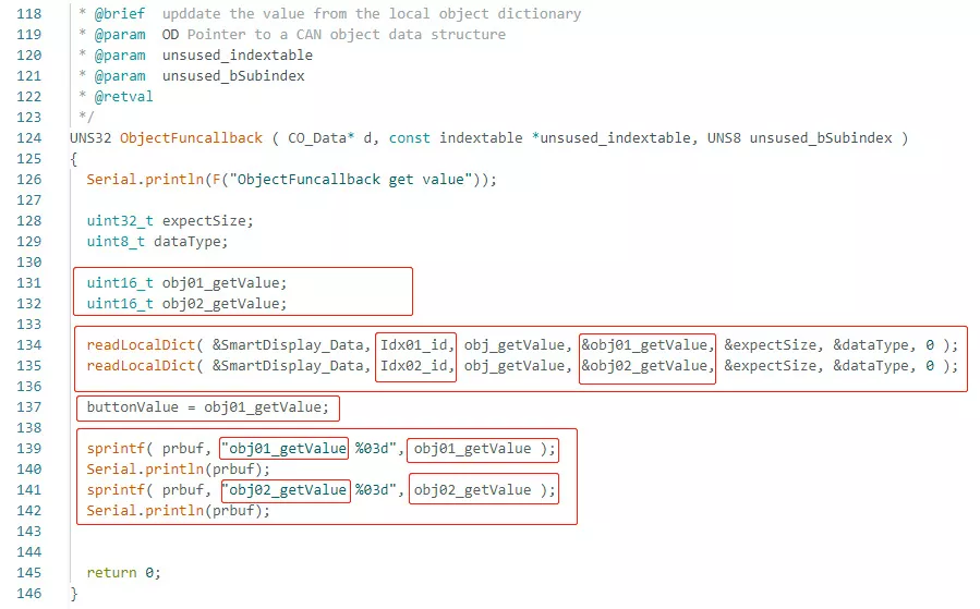 The following figure shows how the “ObjectFunCallback” call for receiving the value from each object. Users could modify or add more items below this code.