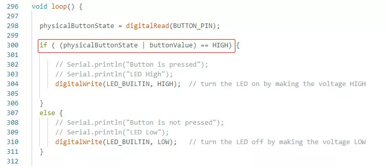 Finally, define the task in the loop to perform the decided scenario. When pressing either the physical button or the touch button will change the color of the indicator on the screen and turn the external LED on or off.