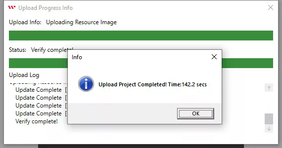 When the Upload project is completed, click on the ok button as shown below.