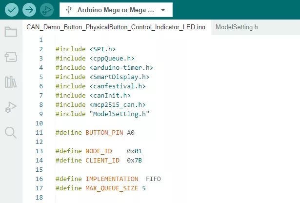 When the Arduino host receives the value change from the physical Button Sensor it will send certain values to the Smart Display through the CAN open protocols. Please refer to the following program for key points “command structure ids and sub-indexes”. The purpose of this program is to update the Indicator (object index 2) value according to the value changed from the physical Button Sensor.